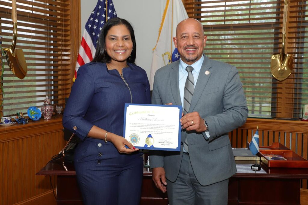 La periodista y miembro suplente de la Junta Central Electoral (JCE) Anibelca Rosario fue reconocida por la Alcaldia de Lawrence, Massachusetts Lawrence, por su trayectoria ética, responsable y su compromiso con la institucionalidad y el fortalecimiento del sistema Electoral dominicano.