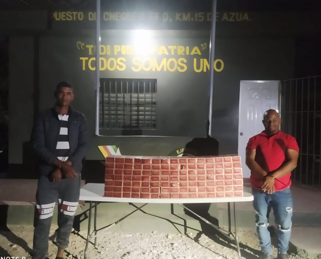 San Juan de la Maguana. Dos hombres fueron arrestados durante una inspección vehicular realizada por miembros del Ejército, en la cual fue encontrado un contrabando de 23,380 cigarrillos en un vehículo.