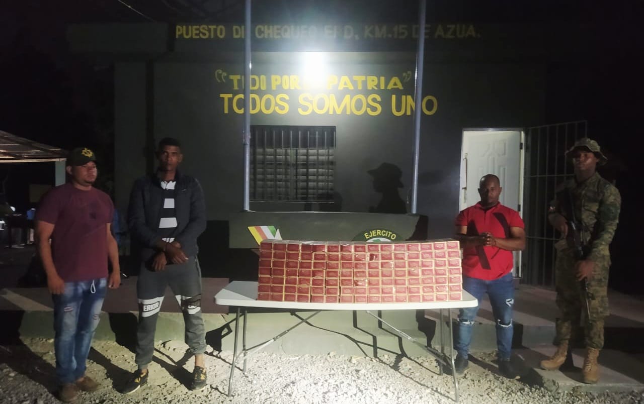 San Juan de la Maguana. Dos hombres fueron arrestados durante una inspección vehicular realizada por miembros del Ejército, en la cual fue encontrado un contrabando de 23,380 cigarrillos en un vehículo.