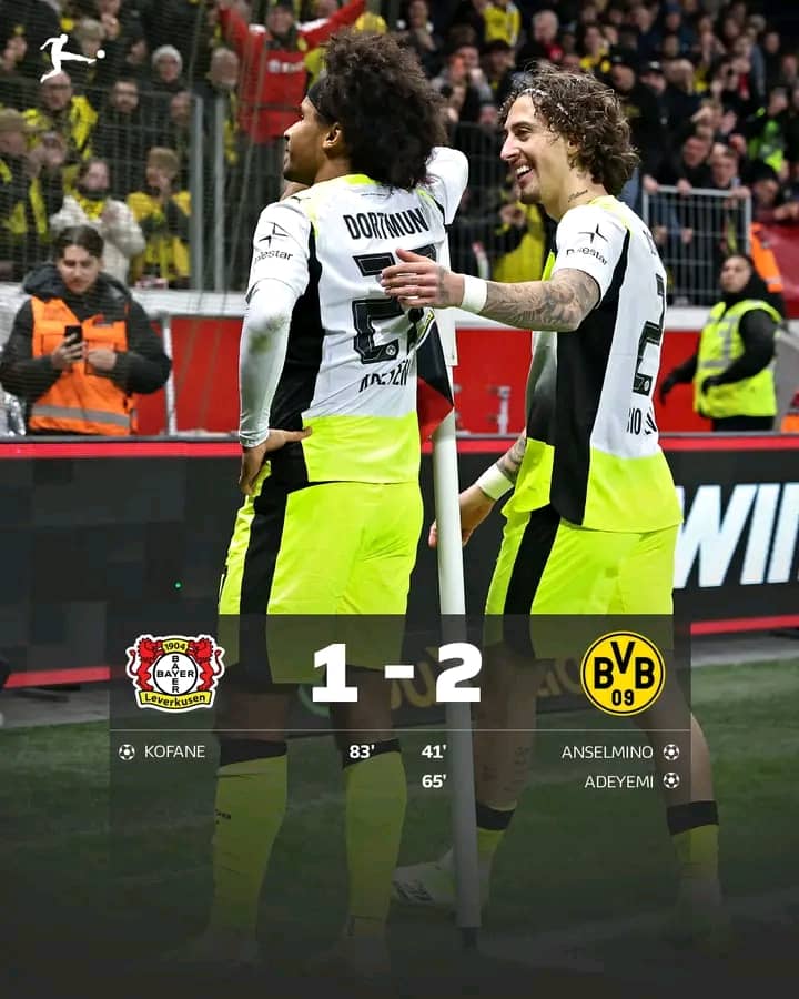 Los 'Black and Yellows' se hicieron fuertes en el BayArena de Leverkusen y, con goles de Aarón Anselmino y Karim Adeyemi se llevaron los 3 puntos para Dortmund.