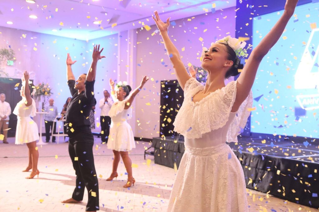 Bajo un ambiente sofisticado, matizado por luces cálidas y la energía impecable de la agrupación musical Fusión Típica de Ballet y el Ballet Nacional Dominicano, los invitados fueron recibidos con el estilo que caracteriza a la casa anfitriona: puntualidad, distinción y un esmero ceremonial por los detalles.