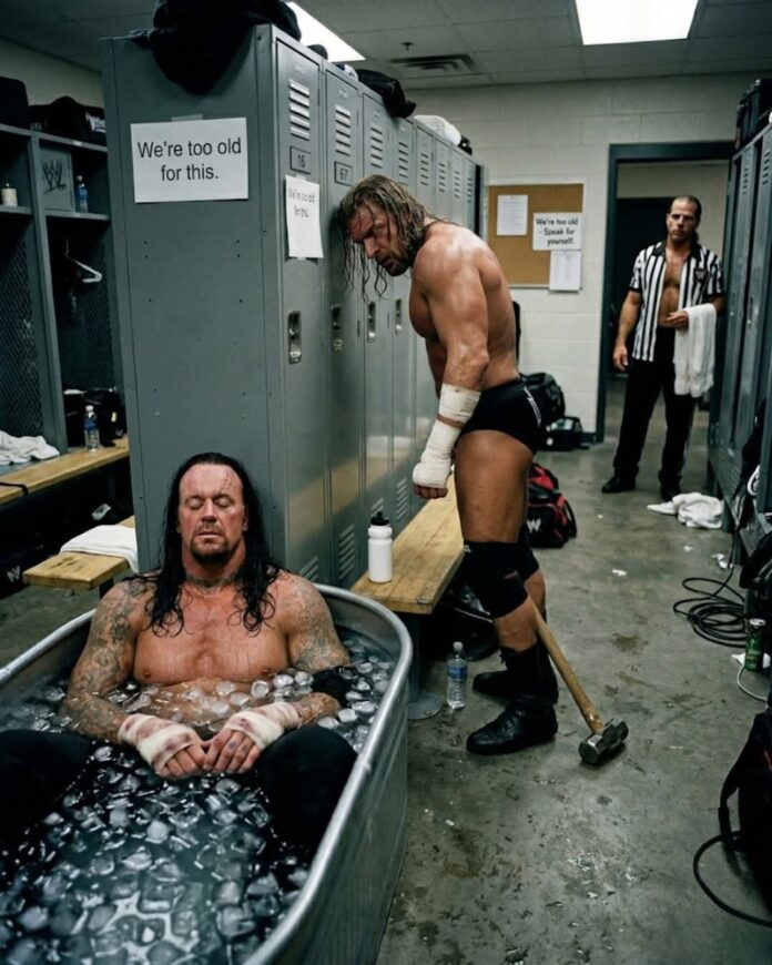 Mark Calaway se sentó en un baño helado, con los ojos cerrados – no descansando, simplemente sobreviviendo a las secuelas.
