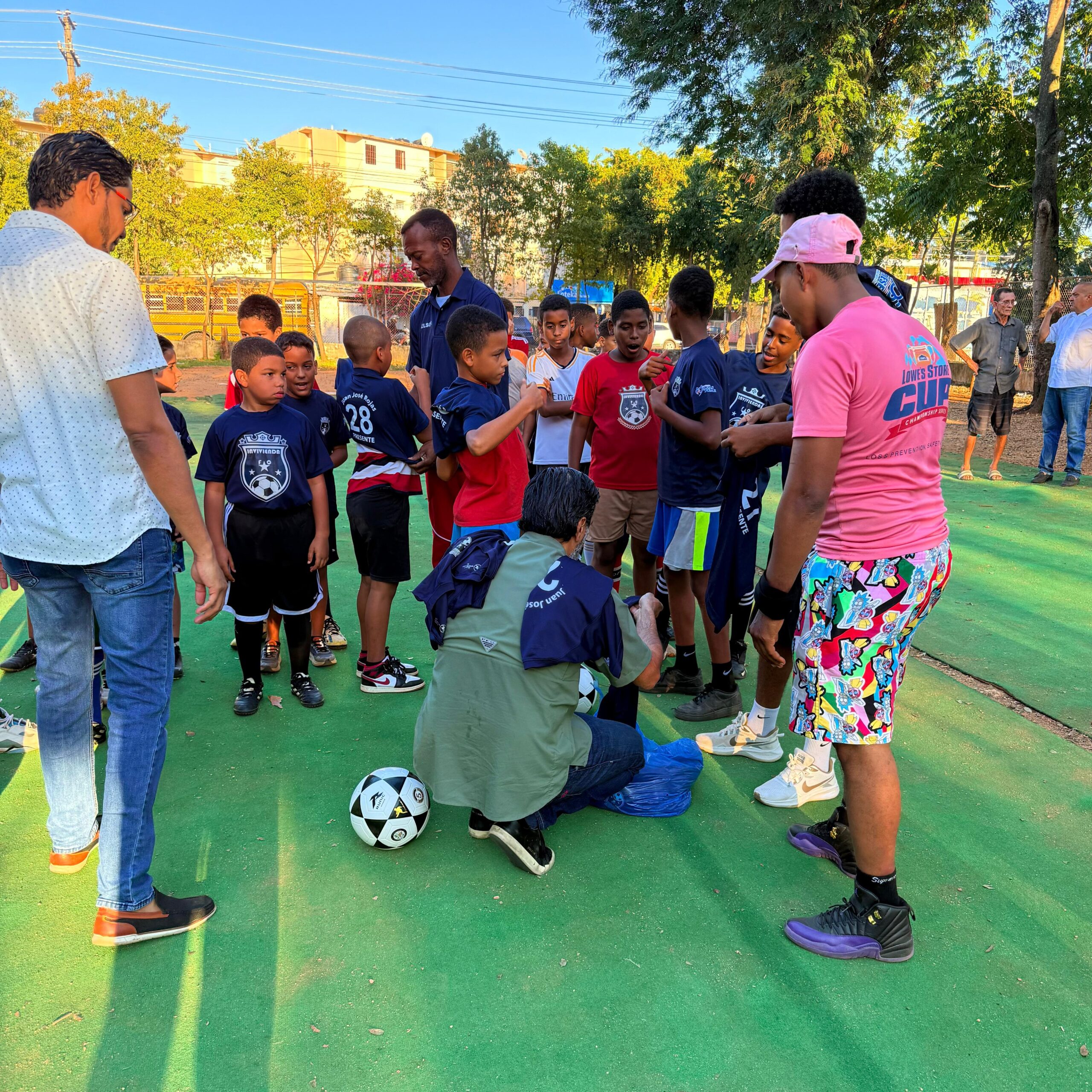Santo Domingo.– El fin de semana, el diputado por la provincia Santo Domingo, Juan José Rojas, realizó una visita al sector de Invivienda, donde hizo entrega de utilería deportiva y uniformes al Football Club Invivienda (FC Invivienda).