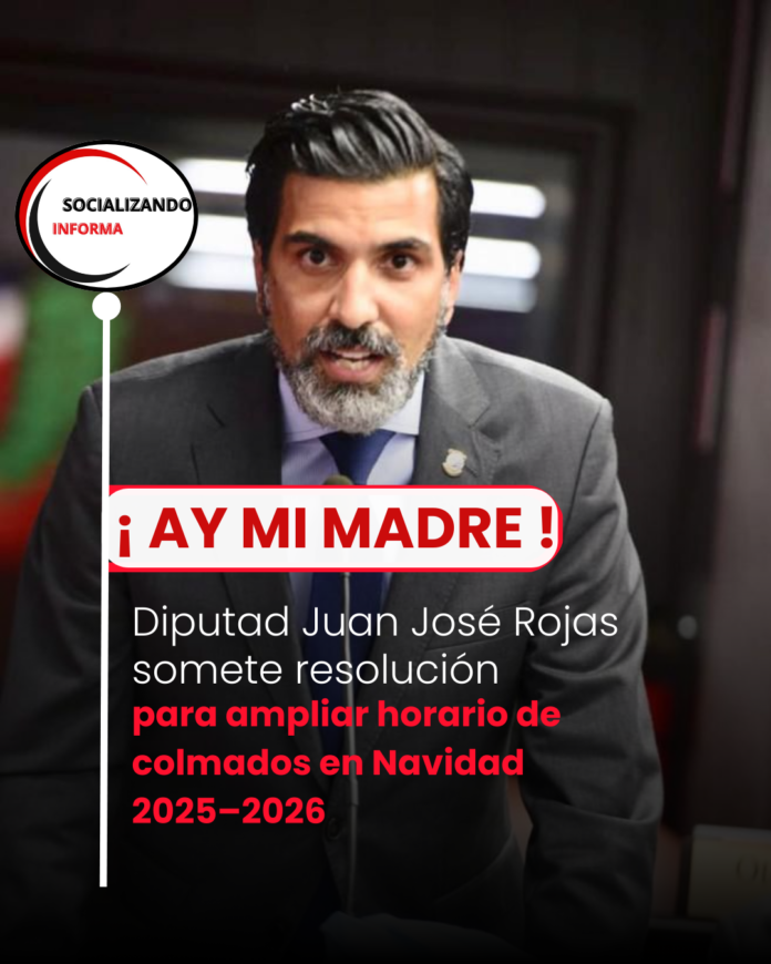 Santo Domingo.– El diputado Juan José Rojas, representante de la provincia de Santo Domingo, sometió ante la Cámara de Diputados una resolución mediante la cual solicita al presidente de la República, Luis Abinader Corona, instruir al Ministerio de Interior y Policía a extender el horario de expendio de bebidas alcohólicas para colmados, colmadones y negocios similares durante las festividades navideñas 2025–2026.