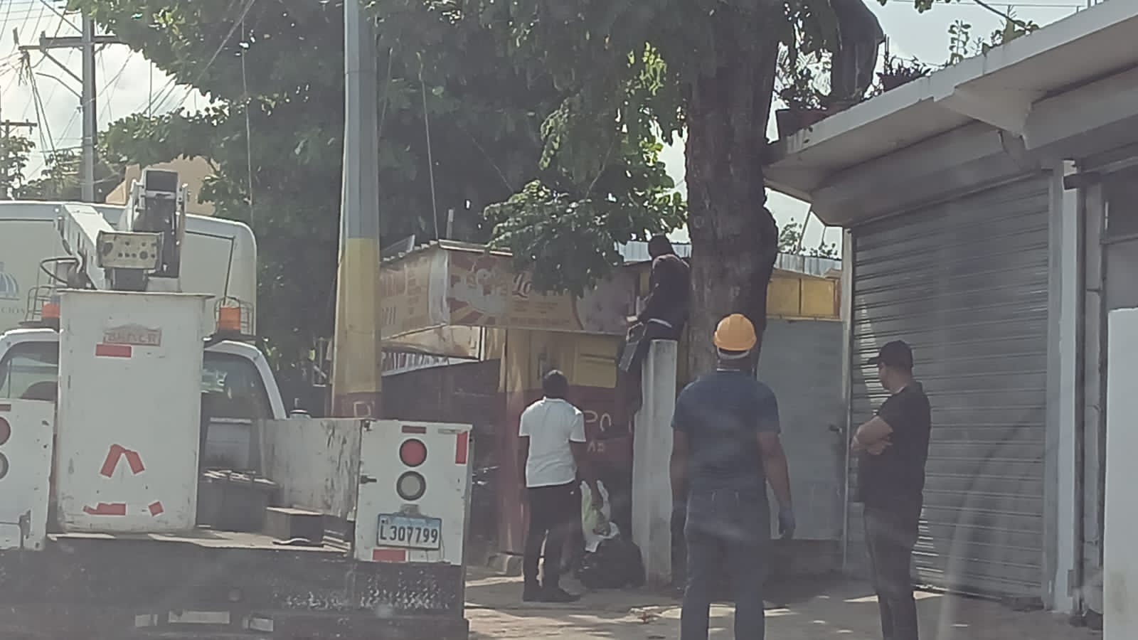 Durante la intervención, los individuos fueron detectados realizando una conexión directa no autorizada, utilizando un camión tipo canasto color blanco.