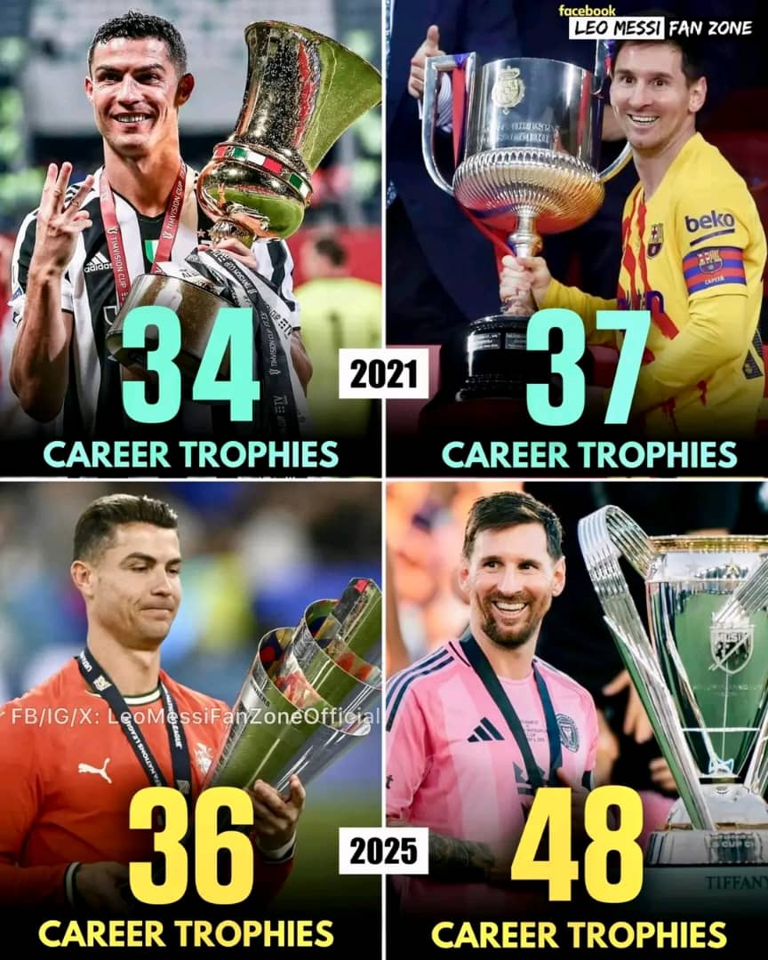 Diciembre de 2025 | Lionel Messi lleva ganando trofeos y ahora la diferencia entre Messi y Ronaldo es de 12.