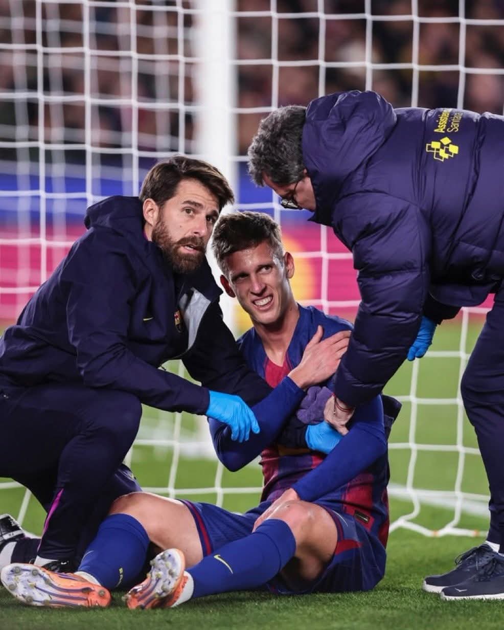 El jugador del primer equipo del FC Barcelona, Dani Olmo sufrió una luxación en el hombro izquierdo en el partido de ayer ante el Atlético de Madrid.