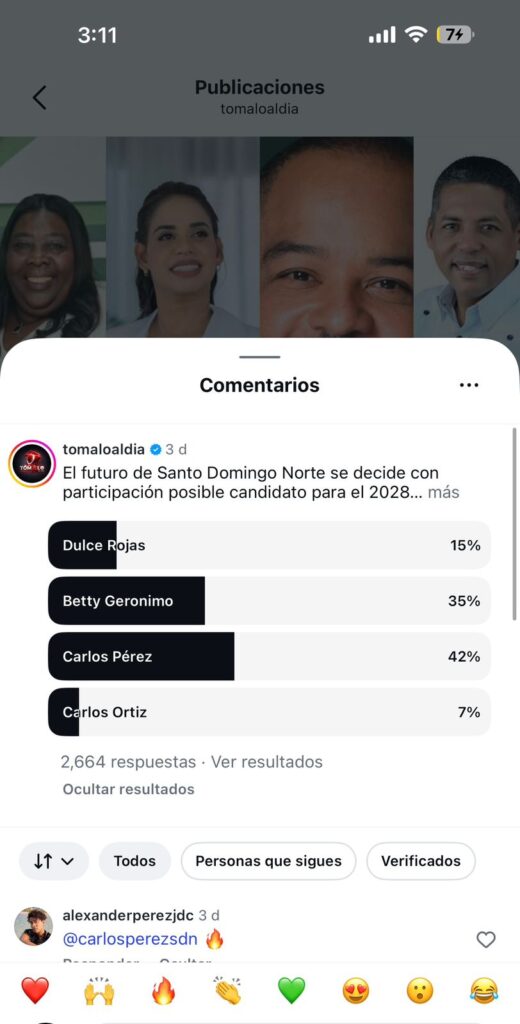 Aunque no se trata de una encuesta científica, los resultados ofrecen una visión preliminar del posicionamiento de figuras políticas en Santo Domingo Norte, marcando tendencias que podrían influir en el escenario electoral de los próximos años.