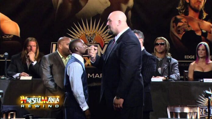 “Eso también fue un accidente afortunado. Originalmente, eso iba a ser una lucha en parejas. Se suponía que Floyd y yo contra Rey y Dave. Desafortunadamente, debido a lesiones, Dave se desgarró un dorsal o un bíceps, y Rey también se lastimó algo, todo antes de que llegáramos a la parte televisiva para comenzar el ángulo. Entonces dijeron: ‘¿Trabajarías con Mayweather?’ Y yo como, ¡claro que sí! ¿Dividir el pago entre dos? Bueno, en realidad, Mayweather se llevó la mayor parte del dinero, y yo me llevé las gracias por aparecer. Pero bueno. Pensé: sí, eso está genial.”