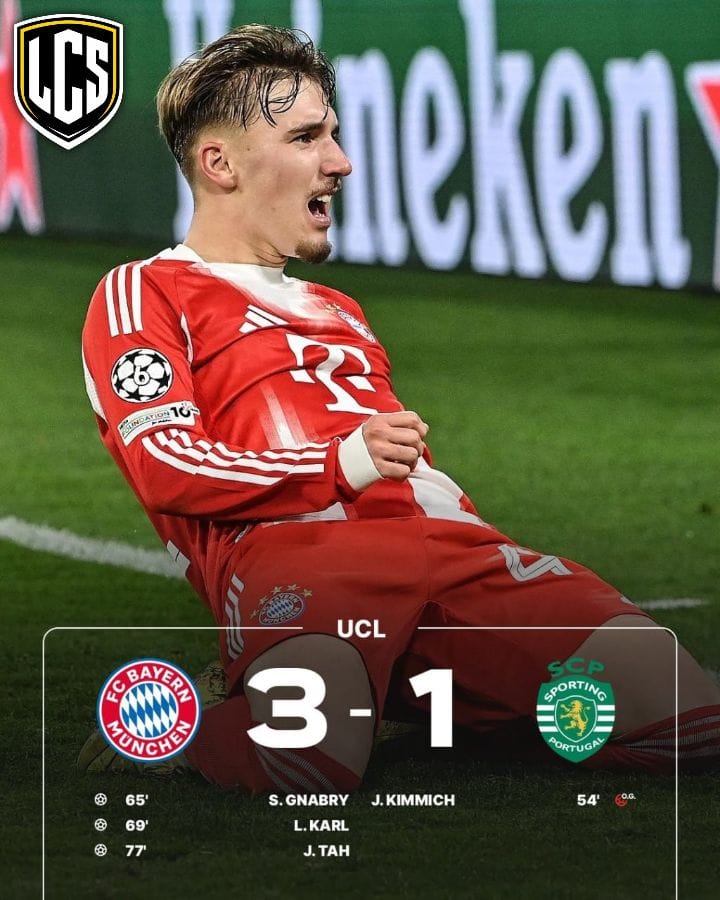 El conjunto de Bayern Múnich venció 3-1 al conjunto de Sporting de Lisboa por la fecha 6 de la fase liga de la UEFA Champions League.