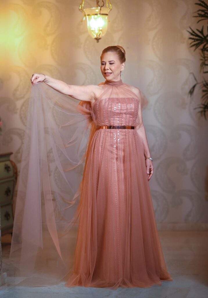 Por segunda vez, la visión creativa de Luis Domínguez revistió de elegancia a la productora y afamada bailarina dominicana Alina Abreu, ganadora en la categoría de coreógrafa del año en esta entrega de Premios Soberano.