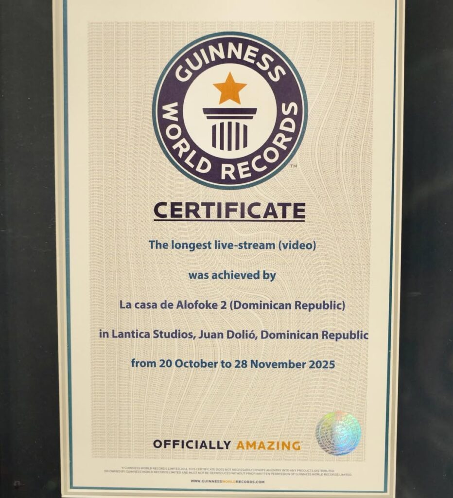 El récord pertenecía a Zhejiang Luyuan Electric Vehicle Co., Ltd., en China, con una transmisión de 624 horas, 37 minutos y 55 segundos. La Casa de Alofoke 2 se mantuvo en vivo durante los 37 días programados (al momento de la entrega del récord), con 916 horas de transmisión ininterrumpida durante 38 días.