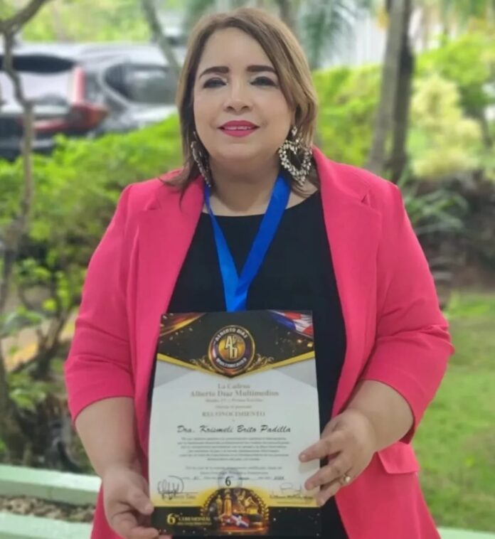 Santo Domingo, marzo de 2026. – En el marco de la 6ta entrega de Alberto Díaz Multimedios, dedicada a personalidades destacadas, periodistas y locutores, la Dra. Krismeli Brito Padilla, productora y conductora del programa “Con la Dra. Controversia” por Nuevo Diario TV, fue distinguida con un reconocimiento y medalla.