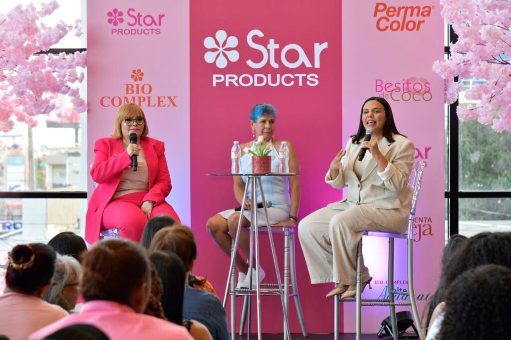 La actividad, contó con la participación de Rommy Grullón, gerente de mercadeo de Star Products, y Rommy Pichardo, subgerente de mercadeo, quienes compartieron escenario con la reconocida estilista y experta en cabello Belkis León. Juntas ofrecieron una charla interactiva, educativa e inspiradora donde se abordaron temas como el cuidado del cabello, herramientas y rutinas para una melena saludable, análisis capilar en vivo, y las principales tendencias en colores y cortes para este año.