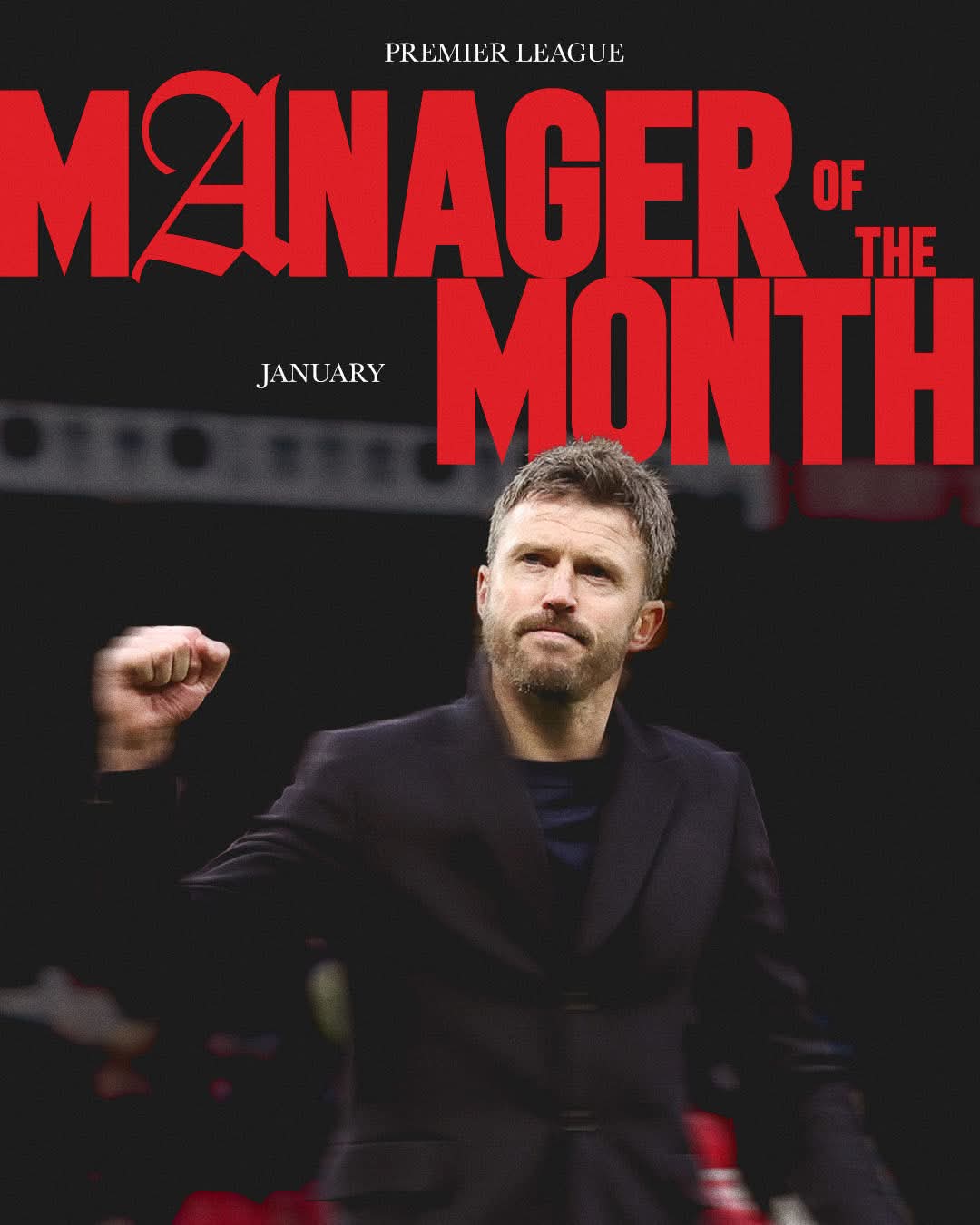 Michael Carrick fue elegido Entrenador del Mes de enero en la Premier League, en su primer mes al mando del Manchester United.