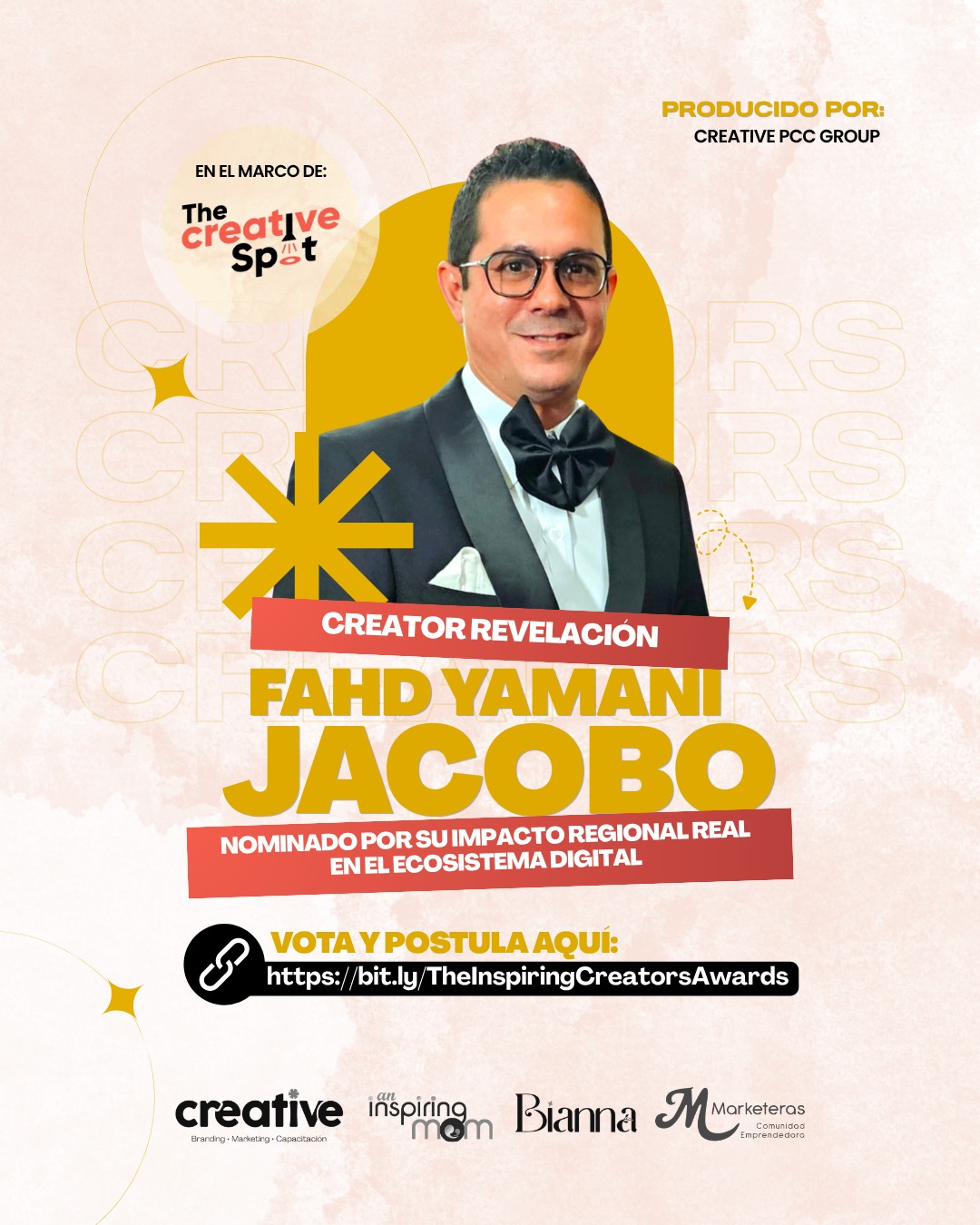 Hoy reconocemos como nominado a Fahd Yamani Jacobo (@jacobofard) como Creator Revelación, una mente estratégica que ha redefinido lo que significa crear, escalar y transformar empresas en la era digital.