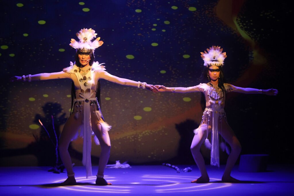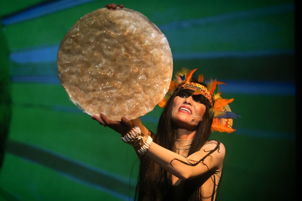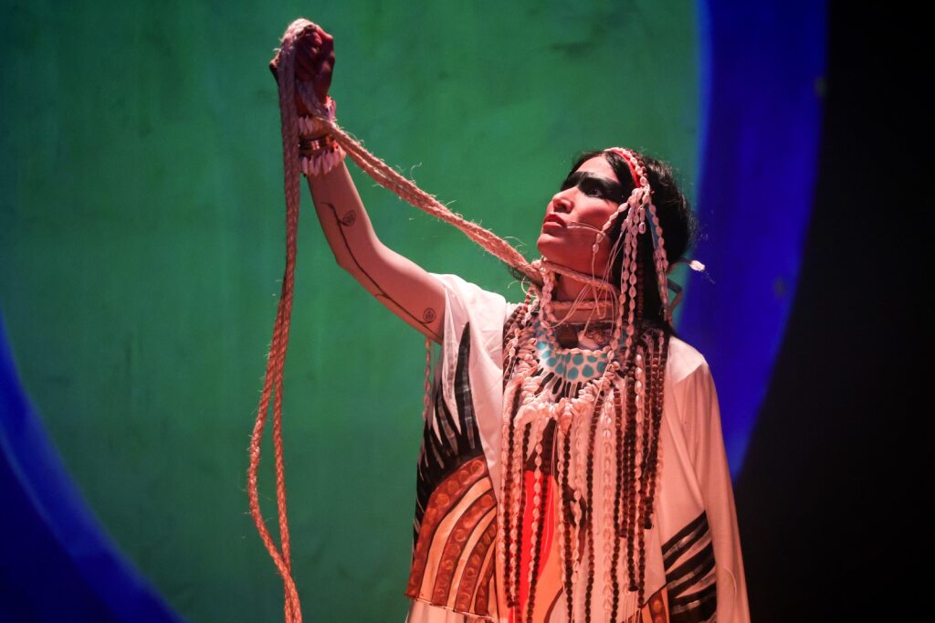 Y es que, bajo la dirección de Fausto Rojas y con texto de Cristian Martínez, ANAKA-O-NA propone una experiencia teatral distinta, en la que el público se sumergió en un viaje sensorial que mezcló actuación con canciones y areitos, proyecciones digitales, música indígena y efectos especiales.