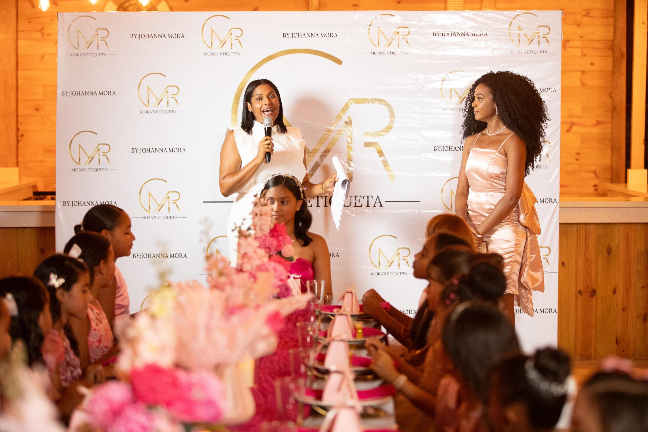 La actividad, realizada en un ambiente cuidadosamente decorado en tonos rosa pastel, dorado y blanco, reunió a familiares, invitados especiales y al talentoso grupo de niñas que participaron en el programa. Durante varias semanas, las participantes recibieron formación en valores fundamentales como el respeto, la presencia, la buena postura y el comportamiento adecuado en la mesa.