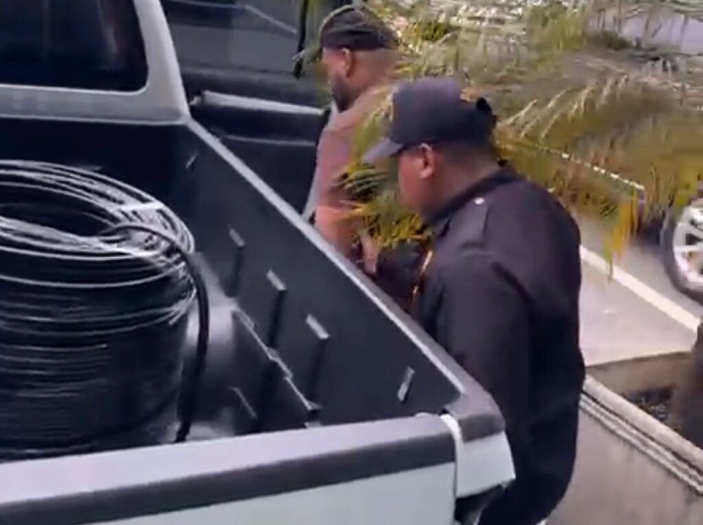 El detenido fue identificado como Misrain Rubio Cruz, quien fue sorprendido en flagrante delito con un rollo de alambre eléctrico de aproximadamente 300 metros, perteneciente a Edeeste.