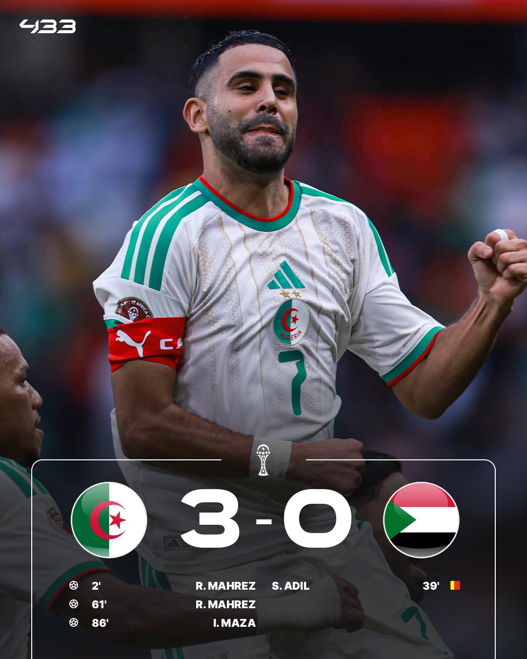 Por la fecha 1 del Grupo E de la Copa Africana de Naciones, Argelia no tuvo problemas y terminó goleando a su similar de Sudán (3-0).