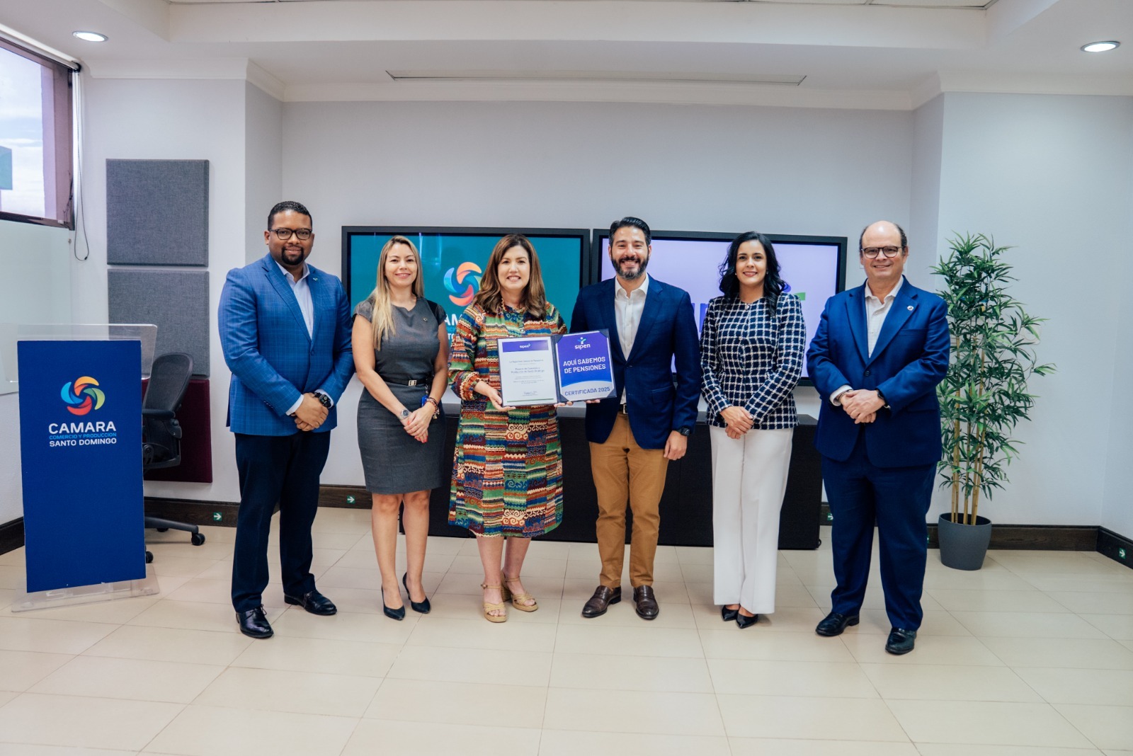 Sipen entrega a la Cámara de Comercio y Producción de Santo Domingo el Sello “Aquí Sabemos de Pensiones”