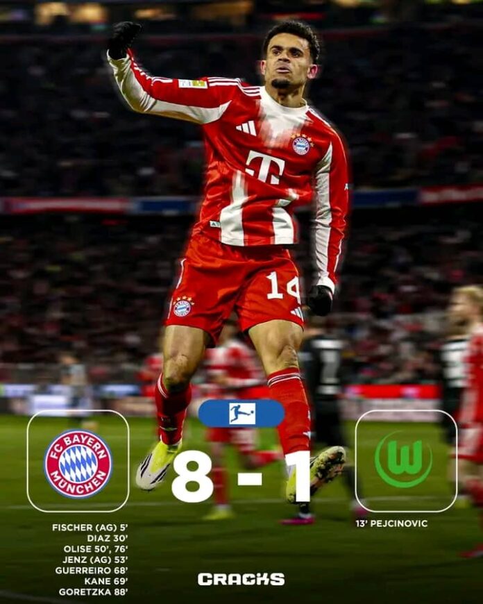 Los 'Bávaros' destrozaron en el Alianz Arena mediante los goles de Luis Díaz, Raphael Guerreiro, Harry Kane, Leon Goretzka, un doblete de Michael Olise y 2 autogoles.