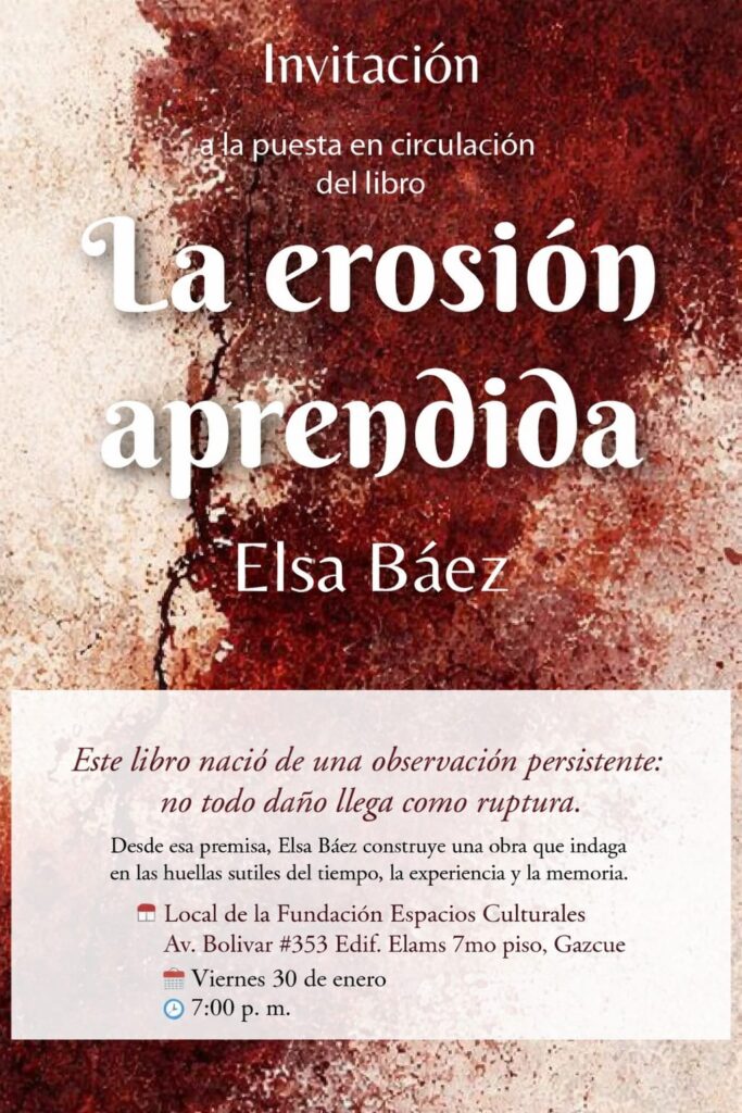 SANTO DOMINGO – La comunidad literaria dominicana se prepara para una noche histórica. El próximo viernes 30 de enero, la escritora y gestora cultural Elsa Báez presentará su más reciente novela, “La erosión aprendida”, en un evento que servirá también para conmemorar el aniversario de la Editora Poetas de la Era y el cumpleaños de su fundadora.