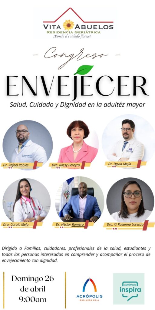 Santo Domingo. – Con el firme propósito de transformar la percepción sobre la vejez y promover un modelo de cuidado basado en la plenitud, la residencia geriátrica Vita Abuelos anunció la celebración del Congreso Envejecer. El evento reunirá a expertos, familiares y profesionales del sector para dialogar sobre los desafíos y las nuevas tendencias en el bienestar de las personas mayores.