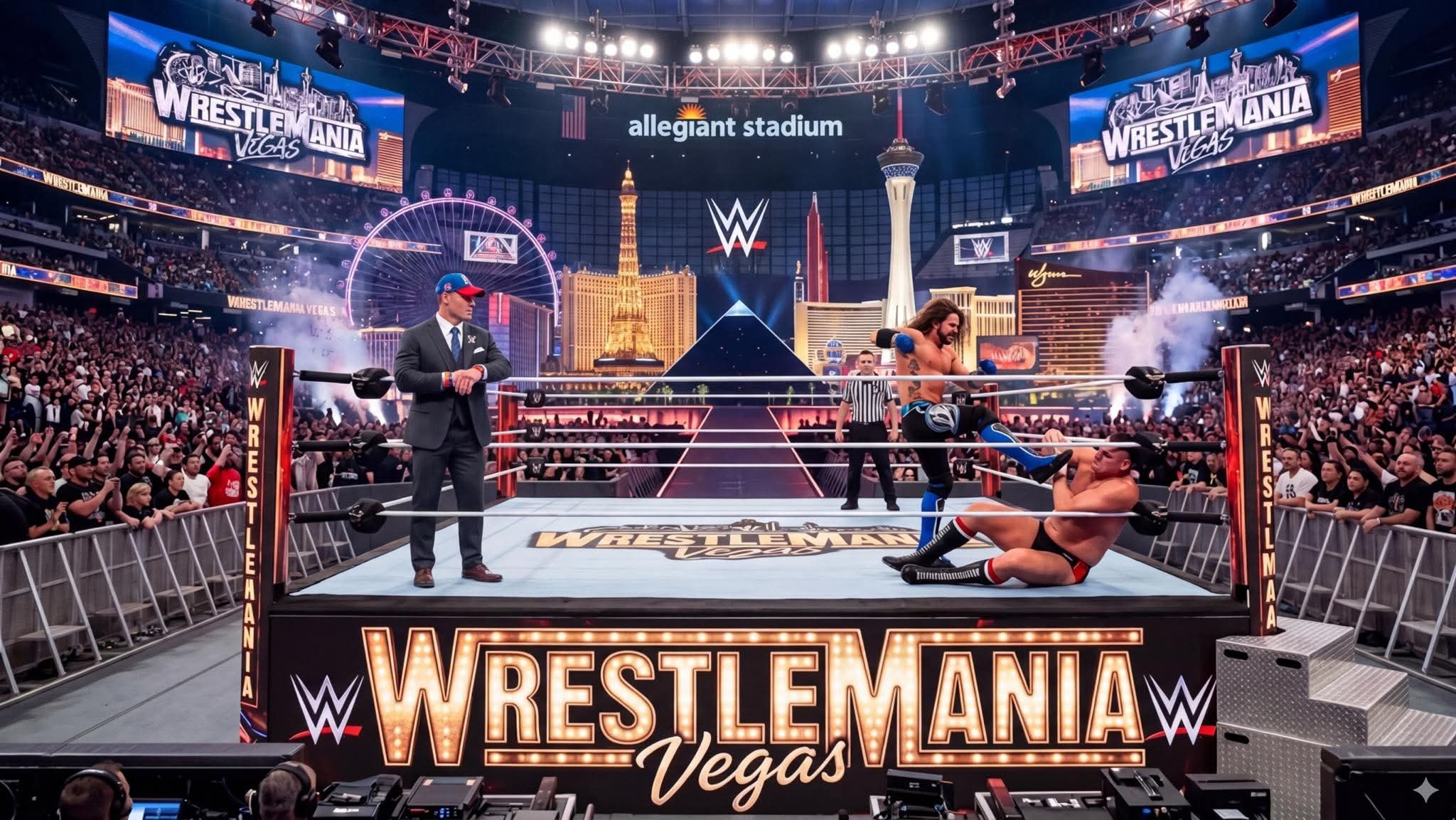 John Cena está en el ring anunciando la asistencia, cuando de pronto aparece Gunther para encararlo. Entonces suena la música de AJ Styles y sale a respaldar a Cena.